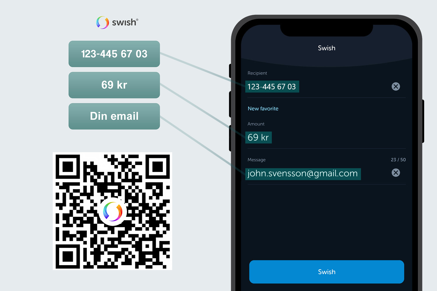 Betalning sker via Swish med uppgifterna i bilden nedan. Var vänlig ange mitt telefonnummer och beloppet 69 kronor. Glöm inte att skriva din e-postadress i meddelandet. E-boken kommer sedan att skickas till din e-post inom kort.